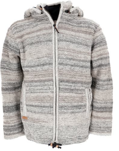 Kuschelige gefütterte Unisex Strickjacke, mellierte Wolljacke Nepal Jacke